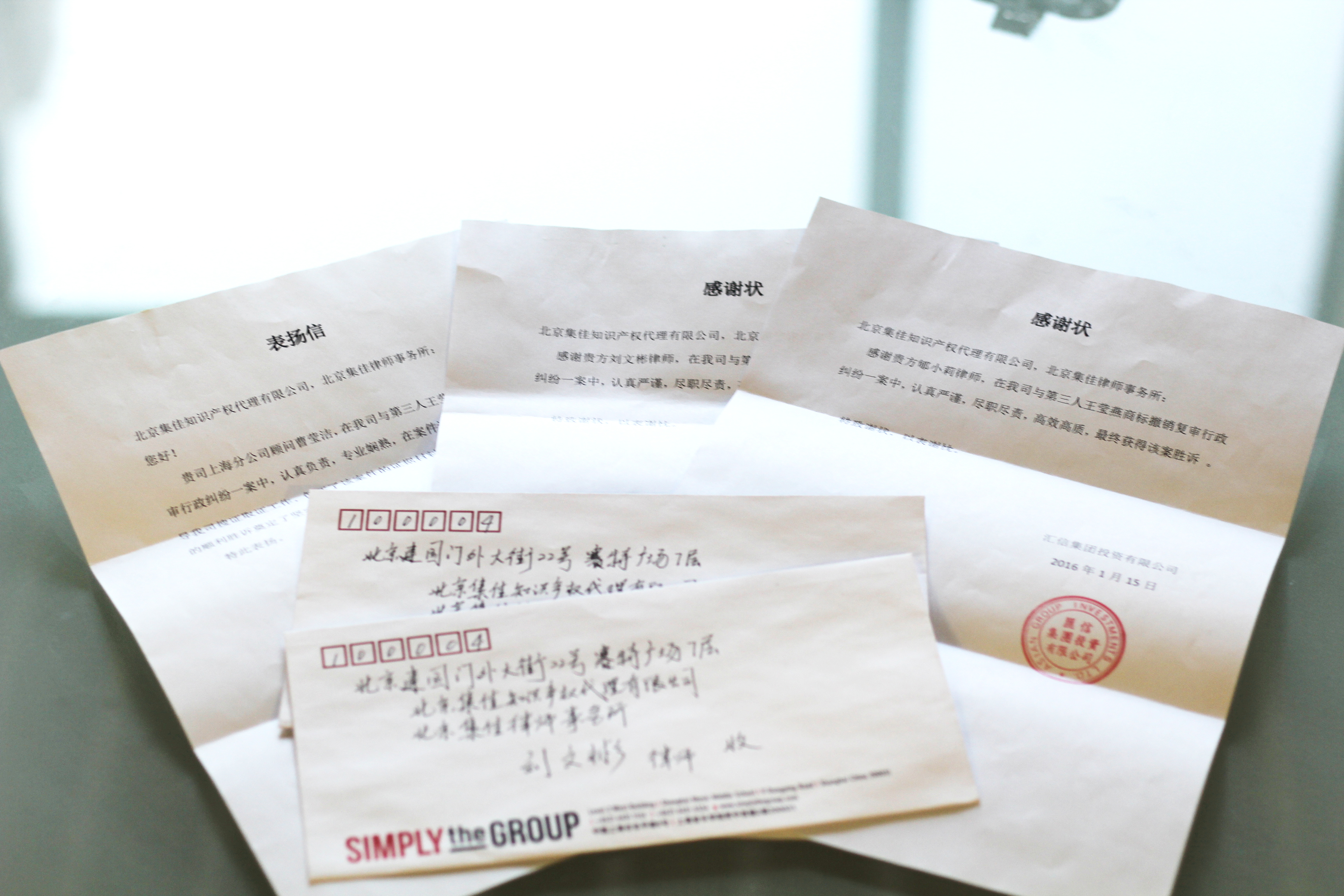 近日,集佳收到匯信集團投資有限公司寄來的感謝狀,為辭舊迎新的2016增添喜氣,也為優秀的律師團隊點個贊!