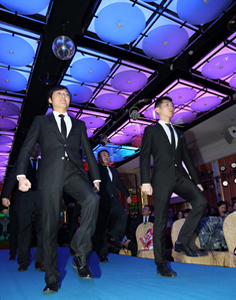 顧問部男士整齊列隊,踏著Mc Jacson的超強動感節奏閃亮出場,向舞臺致敬,并伴著杜鵑圓舞曲的響起,與舞臺上的女士優雅起舞。不足兩分鐘的表演,仿佛讓我們置身于西方宏大典雅的皇家禮堂,也為集佳星光大道帶來最精彩震撼的開場。