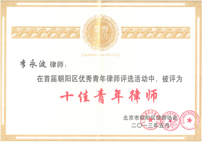 近日,首屆朝陽區優秀青年律師表彰大會在北京國際會議中心成功舉辦。大會為首屆朝陽區100名優秀青年律師頒發了獎牌,北京市集佳律師事務所李永波律師被評為“十佳青年律師”,張亞洲律師、孔繁文律師獲評“先鋒青年律師”。