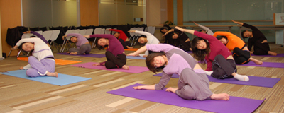 在公司新落成的集佳講堂,中午或晚上,瑜伽老師帶領大家放松、舒展。