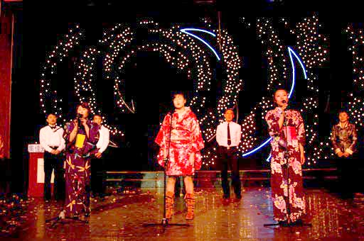 你剛唱罷我登場(chǎng),同樣以唱見長(zhǎng)的還有六個(gè)節(jié)目。河南辦的史國(guó)興一曲《今天》,讓大家領(lǐng)略到了劉德華的風(fēng)采;國(guó)際機(jī)械部的《明天會(huì)更好》結(jié)合上了朱登河老師的激情朗誦;《心愿》由國(guó)際商標(biāo)部帶出,讓大家感覺到了精美的嗓音;溫州辦事處的《朋友別哭》由張主任親率上馬,雖不及朱安靜唱功深厚,但向我們傳達(dá)了辦事處的心聲;日本部的歌聲由日籍顧問(wèn)橫關(guān)先生加盟,女士則以和服登場(chǎng),聯(lián)唱了數(shù)首日本名歌,給人耳目一新的感覺;《好人好夢(mèng)》就像薊門橋員工手中的紅燭,祝福著所有的集佳人。