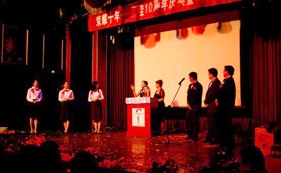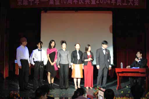 我們自編自演的文藝節(jié)目是本次慶典的重頭戲,在3個(gè)半小時(shí)里,共有來(lái)自總部各部門及辦事處的23個(gè)節(jié)目、230人次登場(chǎng),節(jié)目精彩紛呈,花樣繁多,在場(chǎng)的所有人都被這臺(tái)超高水準(zhǔn)的表演折服了,迭起的掌聲、絢麗的熒光交織成一場(chǎng)盛宴,期間,2004—2005年度的優(yōu)秀員工還獲得了獎(jiǎng)勵(lì)。