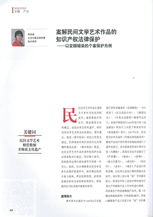 集佳律師李科峰文章《案解民間文學(xué)藝術(shù)作品的知識(shí)產(chǎn)權(quán)法律保護(hù)——以安順蠟染的個(gè)案保護(hù)為例》在《中國(guó)知識(shí)產(chǎn)權(quán)》發(fā)表