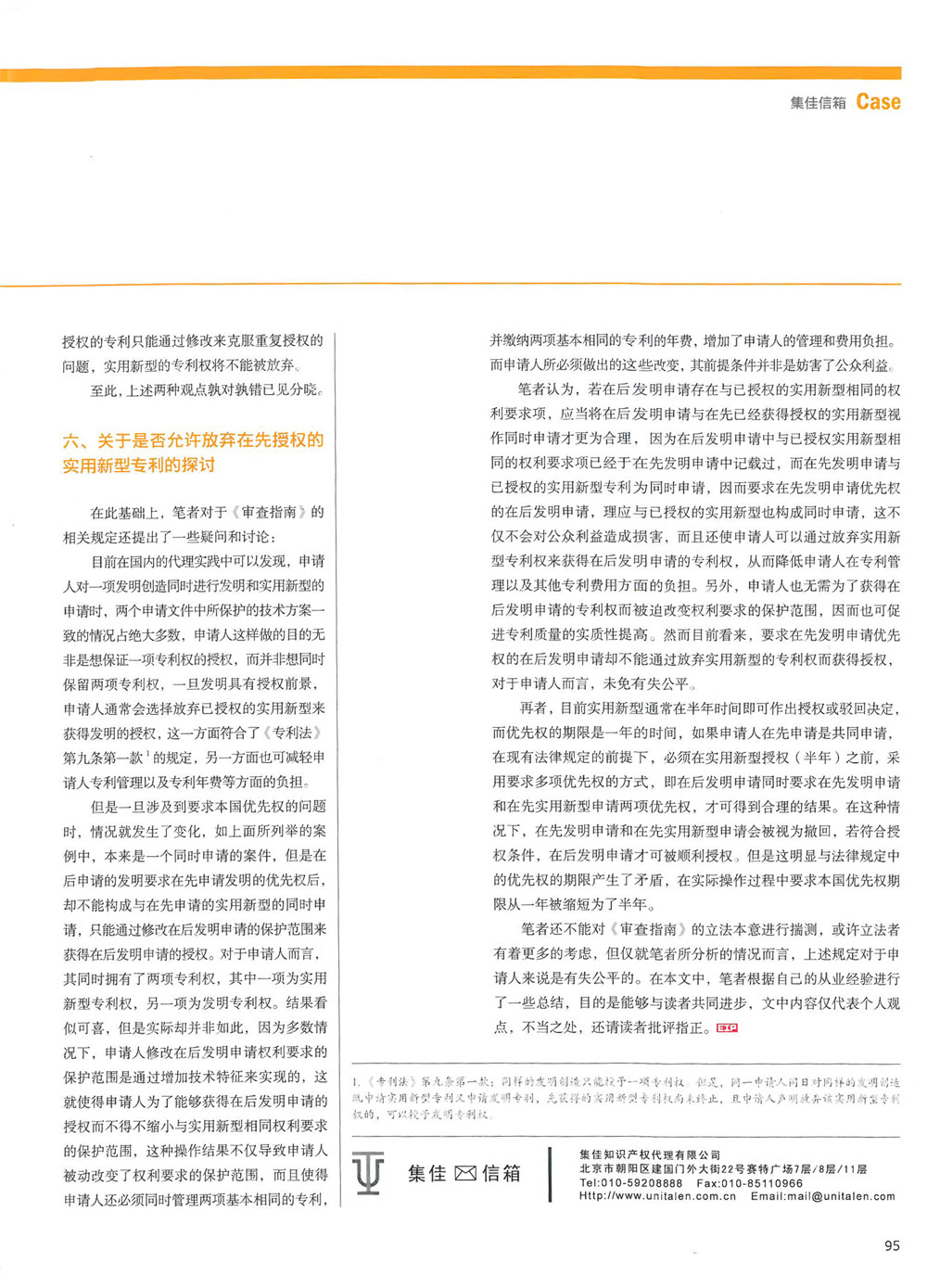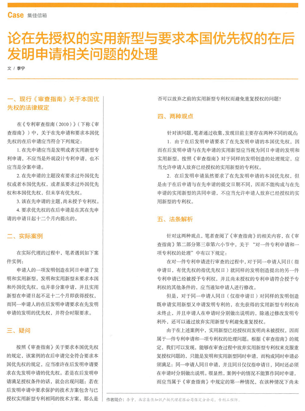 集佳代理人文章《論在先授權(quán)的實用新型與要求本國優(yōu)先權(quán)的在后發(fā)明申請相關(guān)問題的處理》在《電子知識產(chǎn)權(quán)》發(fā)表