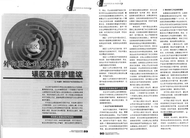 《中國發明與專利》:外向型企業商標保護誤區及保護建議