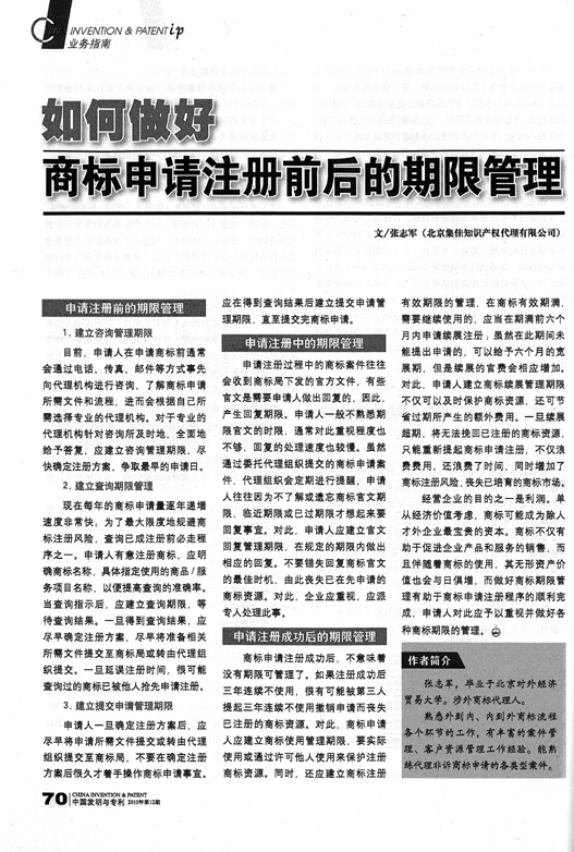 《中國發(fā)明與專利》:如何做好商標申請注冊前后的期限管理