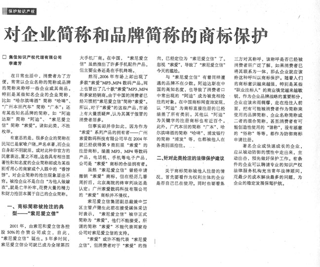 《國際商報》:對企業簡稱和品牌簡稱的商標保護