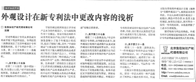 《國際商報》:外觀設計在新專利法中更改內容的淺析
