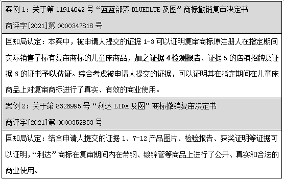 通過上述案例可見,不論是國知局還是法院階段,均有大量的裁定及判決直接認定:產品檢測報告僅為產品檢測情況,無法證明商品進入市場流通流域,不應認定為商標法意義上的使用證據。但是針對該問題并沒有統一的裁判標準,司法實踐中,也不乏案件綜合考量了產品檢測報告。部分案例列舉如下: