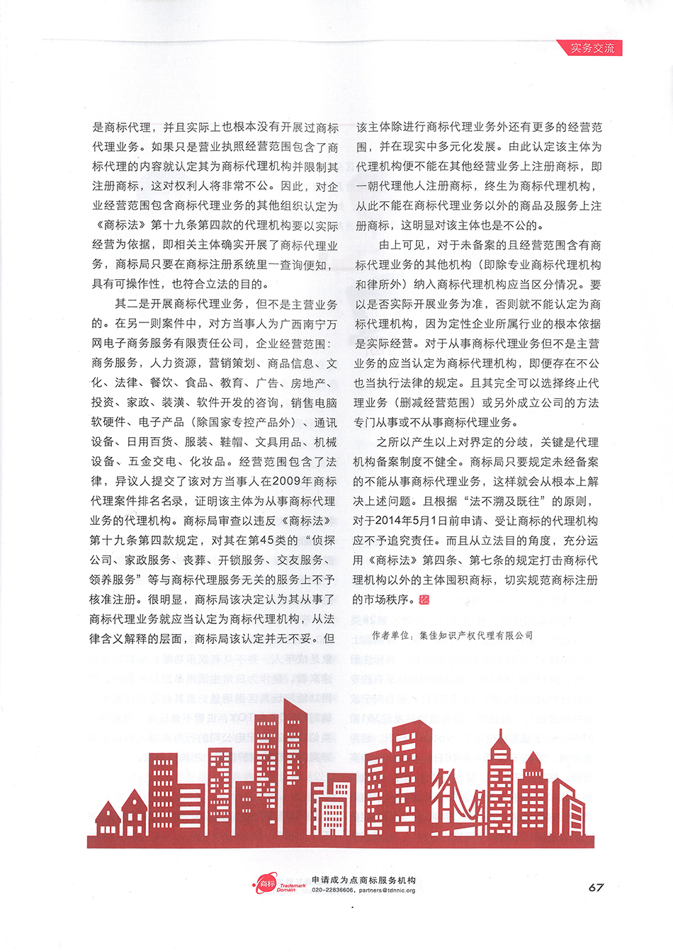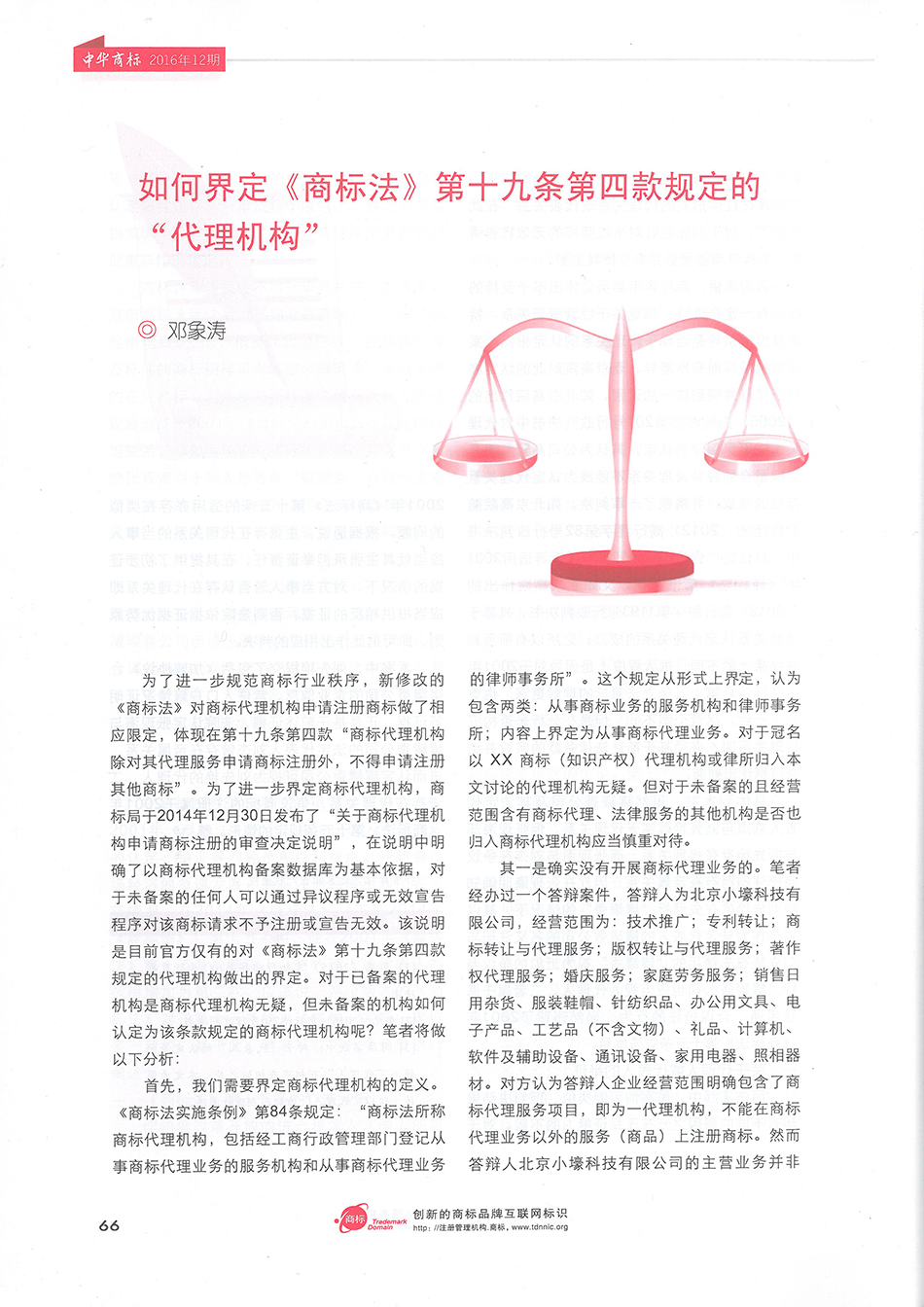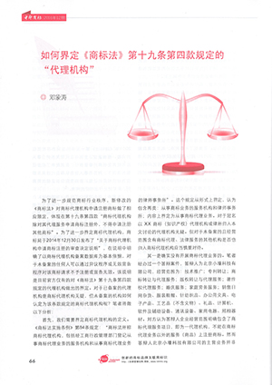 集佳文章《如何界定<商標(biāo)法>第十九條第四款規(guī)定的“代理機(jī)構(gòu)”》在《中華商標(biāo)》發(fā)表