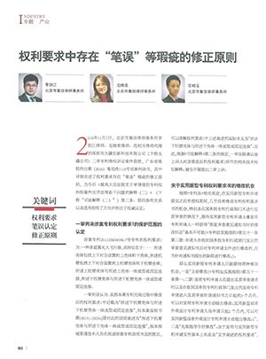 集佳文章《權利要求存在“筆誤”等瑕疵的修正原則》在《中國知識產權》發表