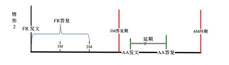 (2)情形2、申請人于FR發文日起的2個月內完成答復,審查員在3個月答復期之后發出AA, 則AA的延期費自AA發文日起算。