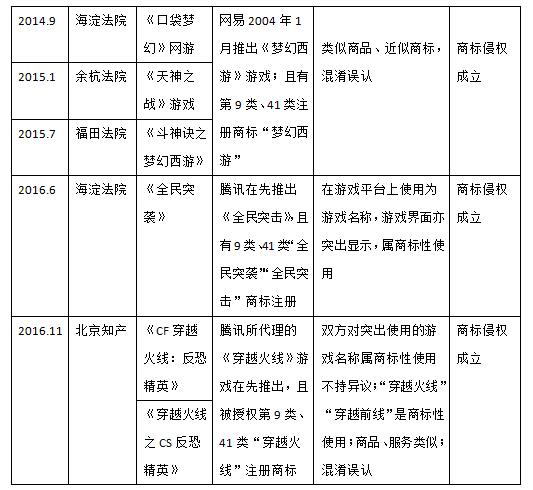 筆者也注意到,在一系列涉及游戲的商標(biāo)侵權(quán)案件中,法院大多認(rèn)定侵權(quán)成立。但這些案件也存在一個共性,即在先商標(biāo)權(quán)人同時也是在先游戲的開發(fā)者或運營者。即便不考慮在先注冊商標(biāo),在先游戲也可以通過主張知名商品特有名稱的反法仿冒條款獲得救濟。本文附表三總結(jié)了原告具有在先作品權(quán)利人和在先商標(biāo)注冊人雙重身份的案例。