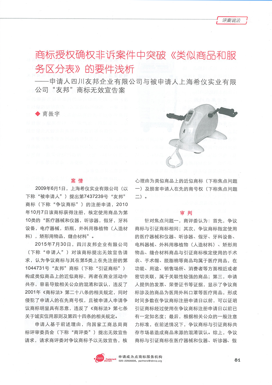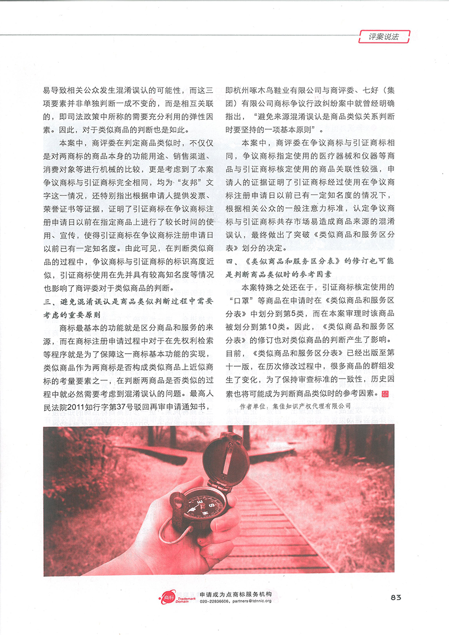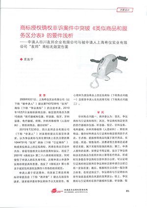 集佳文章《商標授權確權非訴案件中突破<類似商品和服務區分表>的要件淺析》在《中華商標》發表