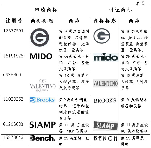 (一)雙方商標使用商品雖然在《類似商品或者服務區分表》的同一類似群組但類似程度較低,商標文字、圖形或者其他組成部分存在近似之處,依照通常的審查標準,應當判定為近似商標,但是兩商標在整體上能夠為消費者所區分的,可以允許共存。反之,如果兩個商標使用商品為同一種商品,或者是關聯程度密切的類似商品,而商標文字、圖形或者其他組成部分近似程度較高,消費者難以區分,則不允許共存。