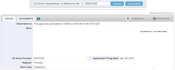 美國的氣味/味道商標申請注冊較少,從我們能找到的商標注冊來看,其在申請過程中主要以文字的方式來對擬申請的氣味/味道進行描述。如:The mark consists of the distinctive flavor of peppermint in connection with nitroglycerin. 該商標包括薄荷和硝酸甘油的獨特風味。