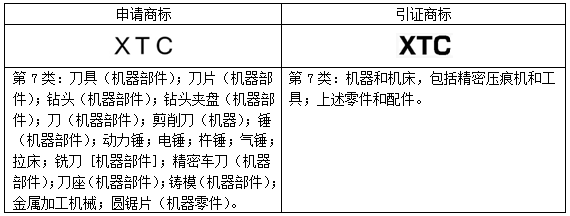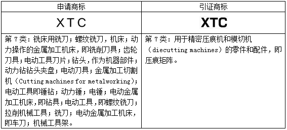 “XTC”商標第01;06;07;09;11類馬德里指定新加坡申請被引證英國公司C&T MATRIX LIMITED名下的第7類在先商標下發(fā)駁回,部分駁回了申請商標在第7類商品上的申請注冊。申請商標和引證商標信息具體如下: