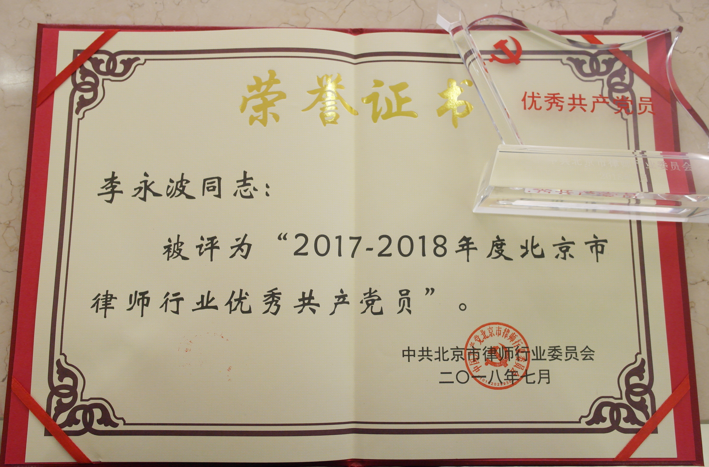 為進(jìn)一步加強(qiáng)基層黨組織建設(shè),切實(shí)發(fā)揮黨支部的戰(zhàn)斗堡壘和黨員的先鋒模范作用,北京市及各區(qū)律師行業(yè)黨委在律師隊(duì)伍中開(kāi)展了先進(jìn)黨組織、優(yōu)秀共產(chǎn)黨員、優(yōu)秀黨務(wù)工作者和黨建之友的評(píng)選活動(dòng)。經(jīng)朝陽(yáng)區(qū)協(xié)會(huì)黨委的綜合審核及評(píng)定,集佳律師事務(wù)所黨支部被授予“2018年度先進(jìn)黨組織”殊榮,李永波律師、張海芳律師、王荷舒律師被授予朝陽(yáng)區(qū)“優(yōu)秀共產(chǎn)黨員”榮譽(yù)稱號(hào),此外,李永波律師還被評(píng)為“2017-2018年度北京市律師行業(yè)優(yōu)秀共產(chǎn)黨員”。
