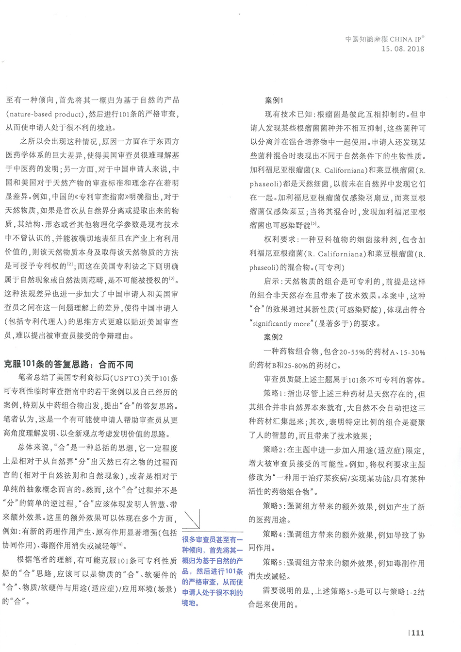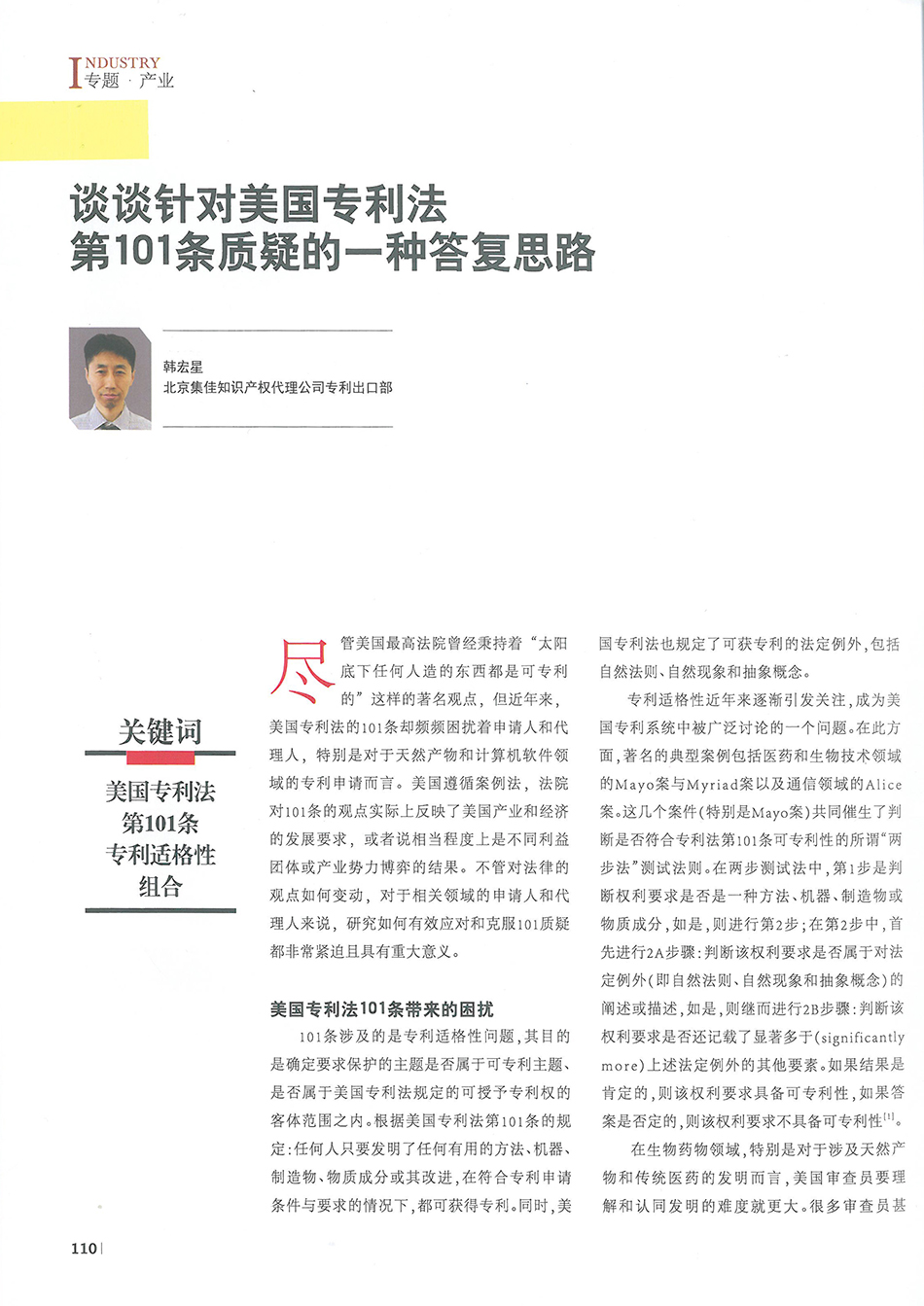 集佳文章《談談針對美國專利法第101條質疑的一種答復思路》在《中國知識產權》發表