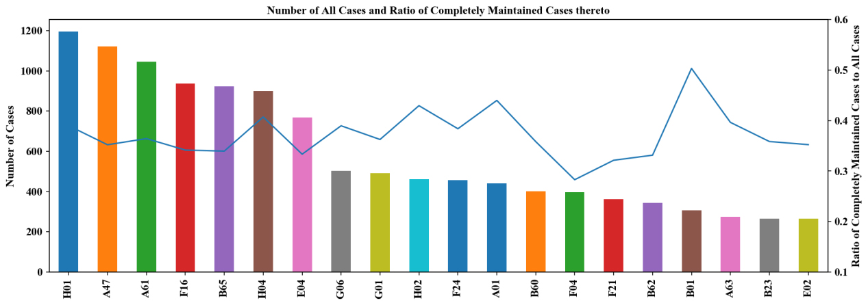 Besides, as can be seen from the above figure, the ratio of completely maintained cases varies with different classes. The classes【3】 where the ratio of completely maintained cases is more than 50% and those lower than 30% are listed below for reader’s reference.