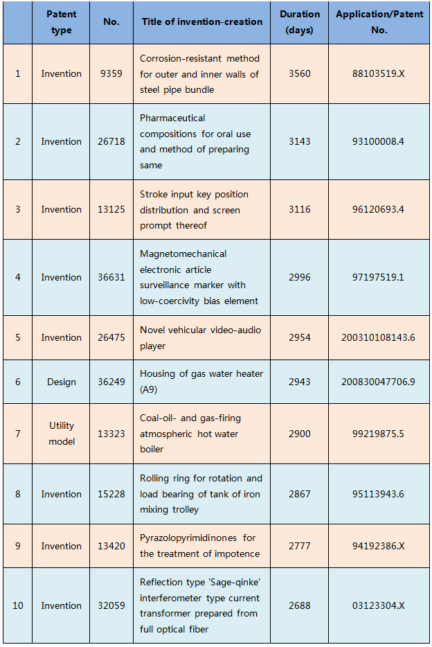 The above duration on the whole is incredibly longer than that expected according to ordinary experiences. As to this point, the author of the report searched the most time-consuming cases, preliminarily determining that the cases with long duration (e.g., more than one year) all are involved in one or more administrative litigations, which is the reason for the long-time consumption. Top ten of the most time-consuming cases are hereby listed below for reference.