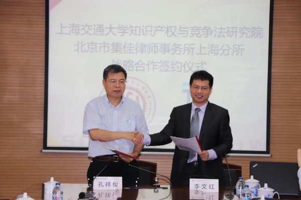 6月26日,北京市集佳律師事務(wù)所上海分所與上海交通大學(xué)知識產(chǎn)權(quán)與競爭法研究院戰(zhàn)略合作協(xié)議簽約儀式在上海交大徐匯校區(qū)凱原法學(xué)樓隆重舉行。上海交通大學(xué)知識產(chǎn)權(quán)與競爭法研究院院長孔祥俊教授、劉維副教授,北京市集佳律師事務(wù)所上海分所主任李文紅、資深顧問王俊河、合伙人李擘、合伙人張振軍出席簽約儀式。