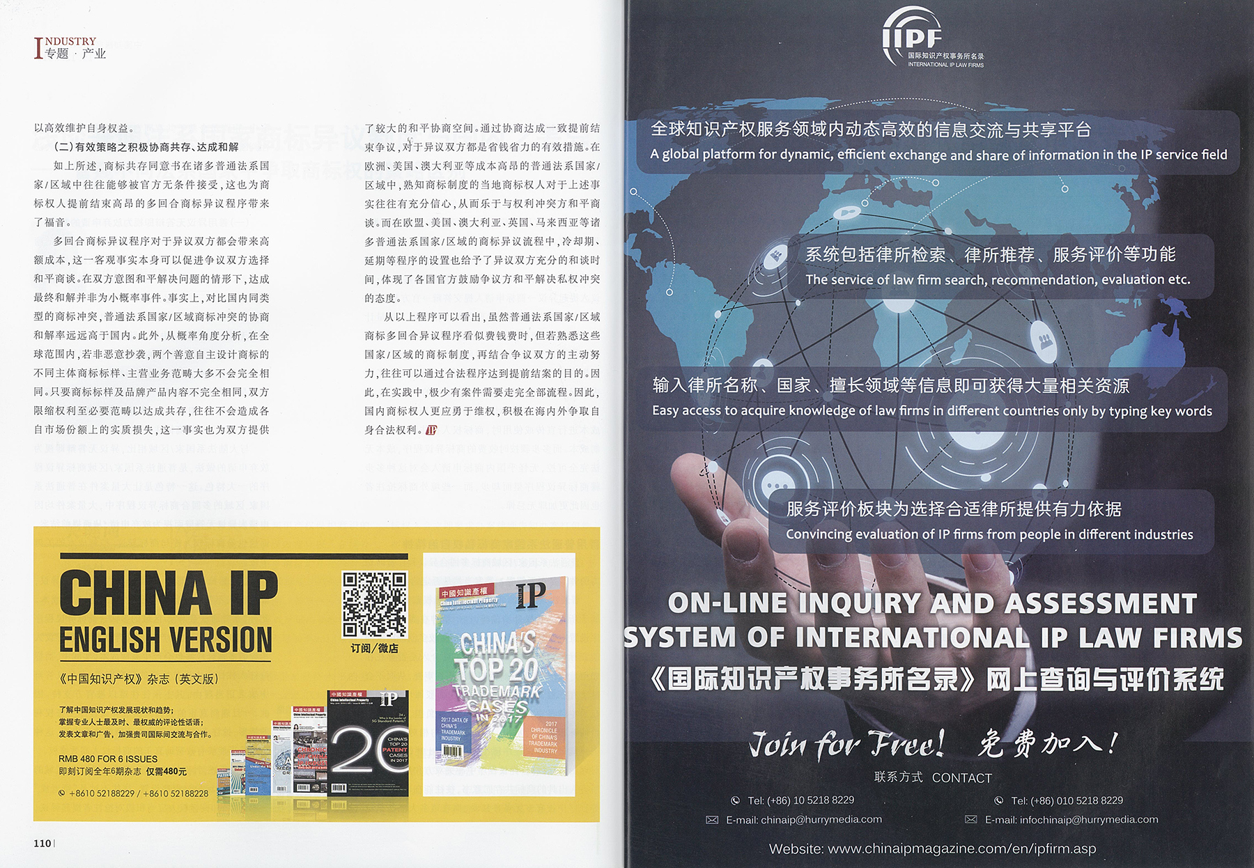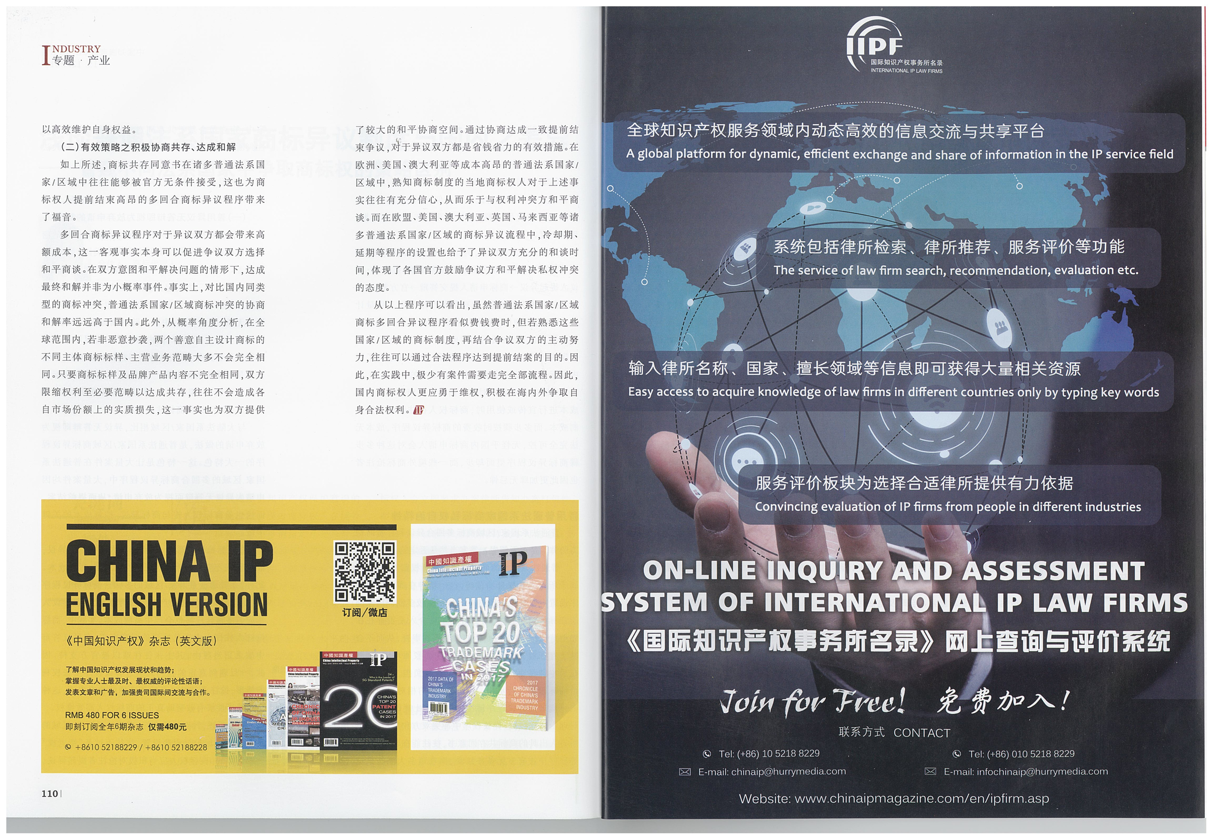 集佳文章《淺談普通法系國家商標異議制度與國內(nèi)之差異——管窺不同法系國家中爭取商標權(quán)的策略區(qū)別》在《中國知識產(chǎn)權(quán)》發(fā)表