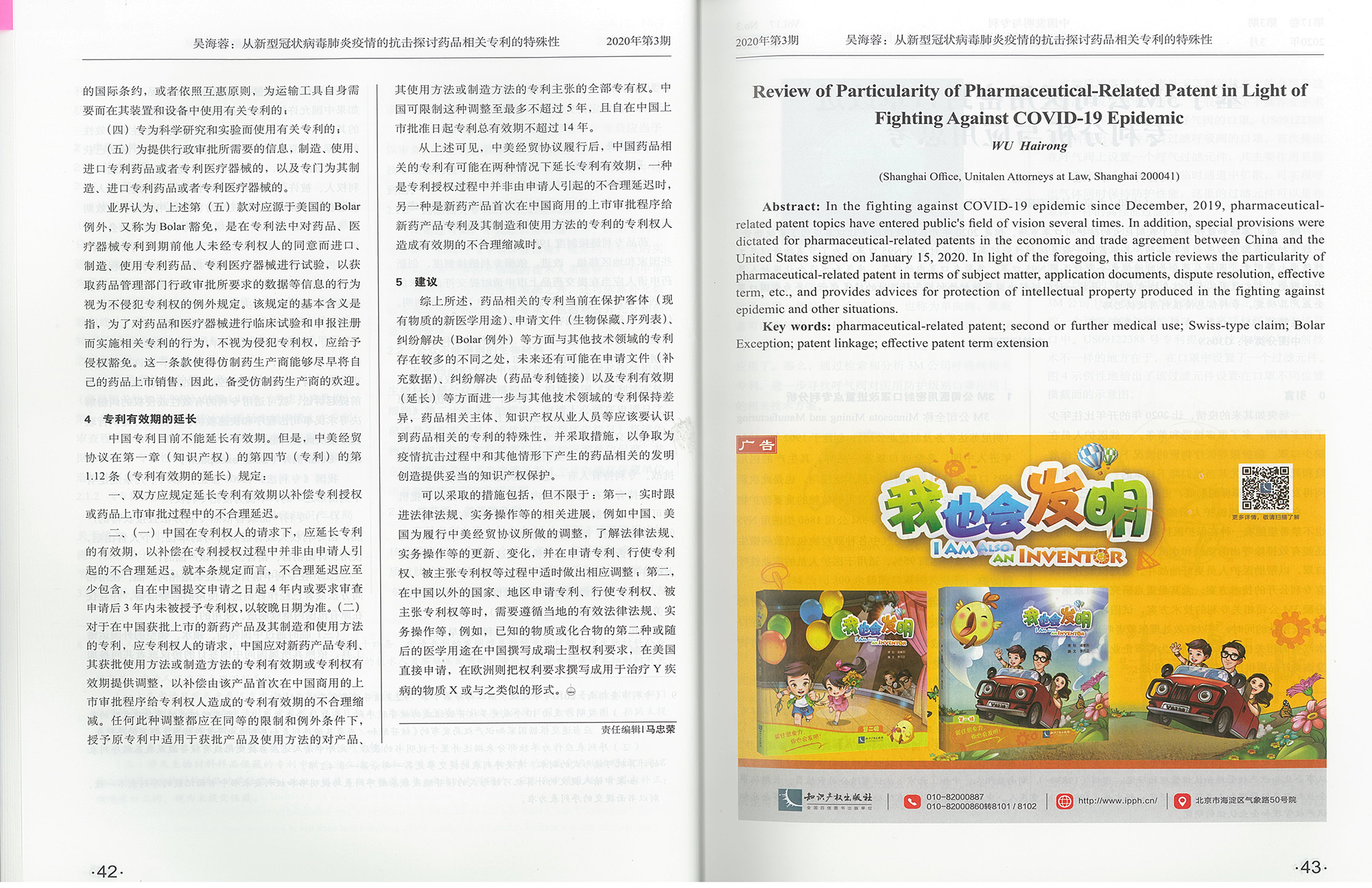 集佳文章《從新型冠狀病毒肺炎疫情的抗擊探討藥品相關專利的特殊性》在《中國發明與專利》發表