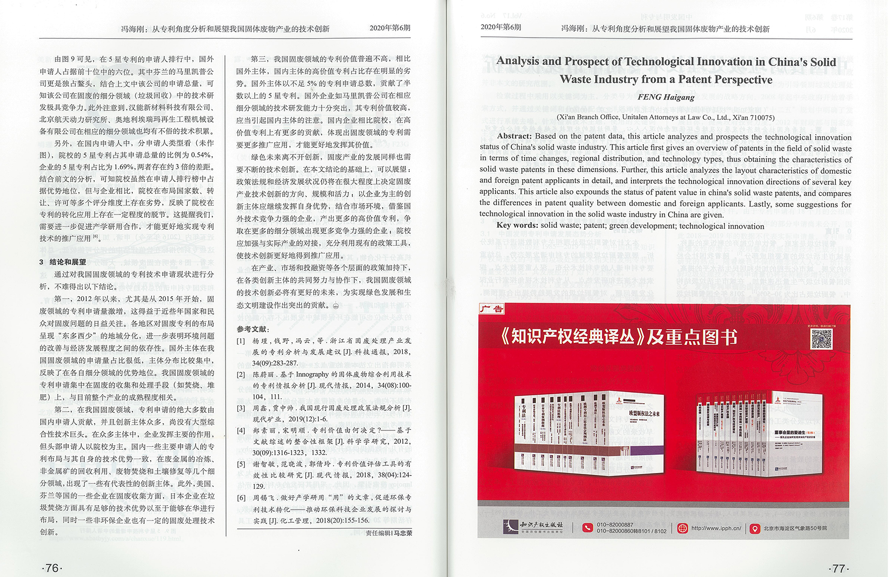集佳文章《從專利角度分析和展望我國固體廢物產(chǎn)業(yè)的技術(shù)創(chuàng)新》在《中國發(fā)明與專利》發(fā)表