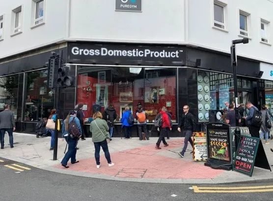 對(duì)此,PCOL辯稱不能僅因Banksy此前發(fā)表的“版權(quán)是為了保護(hù)失敗者”言論而否定其將作品申請(qǐng)注冊(cè)為商標(biāo)的權(quán)利,并援引歐洲法院在NEUSCHWANSTEIN案(案號(hào)C?488/16 P)中的觀點(diǎn),認(rèn)為不能因?yàn)锽anksy允許公眾無(wú)償使用《擲花者》便否定其申請(qǐng)商標(biāo)系出于善意。為表明Banksy確有使用擲花者商標(biāo)的意圖,Banksy在收到無(wú)效申請(qǐng)后還在英國(guó)大倫敦南側(cè)的城市克羅伊登設(shè)立了一家名為“Gross Domestic Product”的快閃店,用以展出包括《擲花者》在內(nèi)的涂鴉作品。但Banksy此后公開(kāi)承認(rèn)這家商店只是為了在本案中取得有利裁定而設(shè)立的。