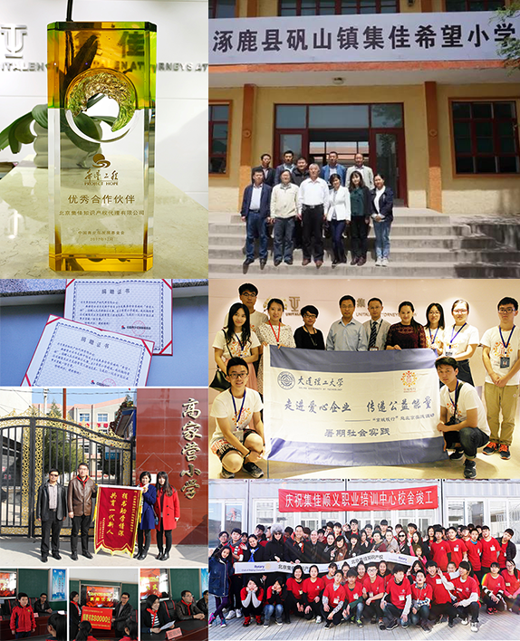 責(zé)任于心,擔(dān)當(dāng)于行。作為一家有溫度的企業(yè),集佳在用心為企業(yè)提供知識產(chǎn)權(quán)保護(hù)策略的同時,也一直自覺承擔(dān)各項社會責(zé)任,熱心參與各項公益事業(yè),發(fā)揚行業(yè)擔(dān)當(dāng)精神,堅持不懈用愛心回饋社會。尤其是在教育領(lǐng)域,集佳不僅重視專業(yè)人才培養(yǎng),通過愛心獎學(xué)金、集佳班、提供社會實踐等方式與中國政法大學(xué)、同濟(jì)大學(xué)、大連理工大學(xué)等眾多高校合作培養(yǎng)知識產(chǎn)權(quán)專業(yè)人才,更是特別關(guān)注青少年的教育和成長。目前,集佳已援建13所希望小學(xué),并多次進(jìn)行回訪,持續(xù)關(guān)注孩子們的學(xué)習(xí)和成長,了解學(xué)校和孩子們的真實所需,提供最有效的幫助。同時,集佳設(shè)立了多項助學(xué)基金,對多所小學(xué)、中學(xué)、技術(shù)學(xué)校等提供幫扶。集佳期望,通過一點一滴的幫助,讓孩子們的生活和學(xué)習(xí)更加豐富多彩,讓他們感受著愛的力量,懷抱希望,用優(yōu)異的學(xué)業(yè)報效祖國,用同樣的關(guān)愛回報社會。