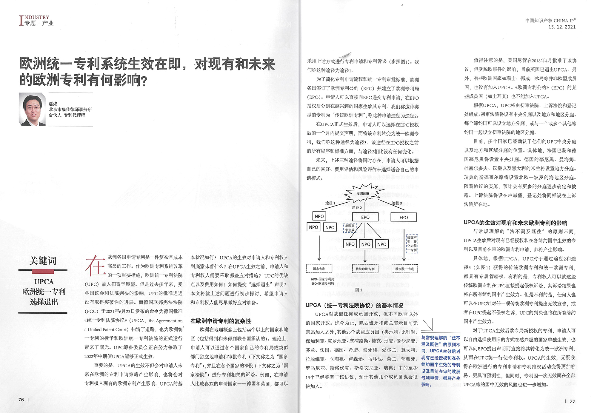 集佳文章《歐洲統一專利系統生效在即,對現有和未來的歐洲專利有何影響?》在《中國知識產權》發表