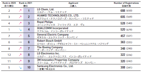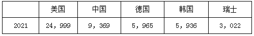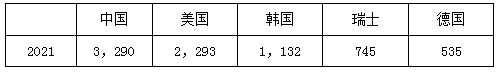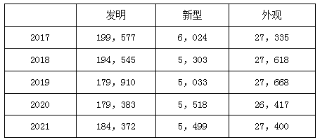 前5個國家外觀專利申請量統計(除日本本國申請):