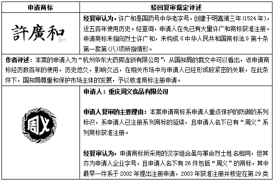 | 通過駁回復審予以核準的案例 |