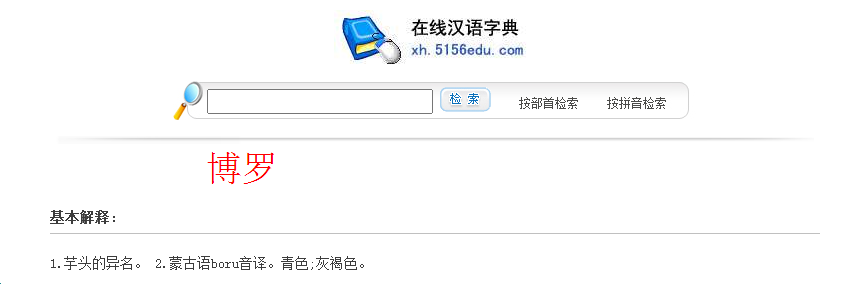 “博羅”除了是縣級以上行政區劃名稱外,本身也是固有詞匯,其含義為“1.芋頭的異名。2.蒙古語boru音譯。青色;灰褐色”。