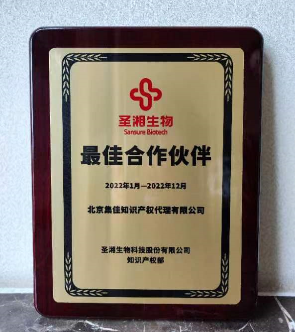 近日,集佳優(yōu)質服務再次喜獲客戶點贊——圣湘生物科技股份有限公司授予集佳2022年度“最佳合作伙伴”榮譽稱號。