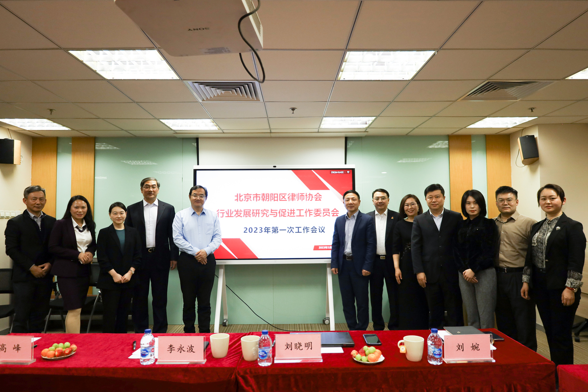 2023年3月6日,北京市朝陽區律師協會行業發展研究與促進工作委員會(以下簡稱朝陽律協行發委)第一次工作會議在集佳律所順利召開。朝陽律協副會長劉曉明律師、朝陽律協行發委主任李永波律師及各副主任、秘書長、副秘書長參加會議。