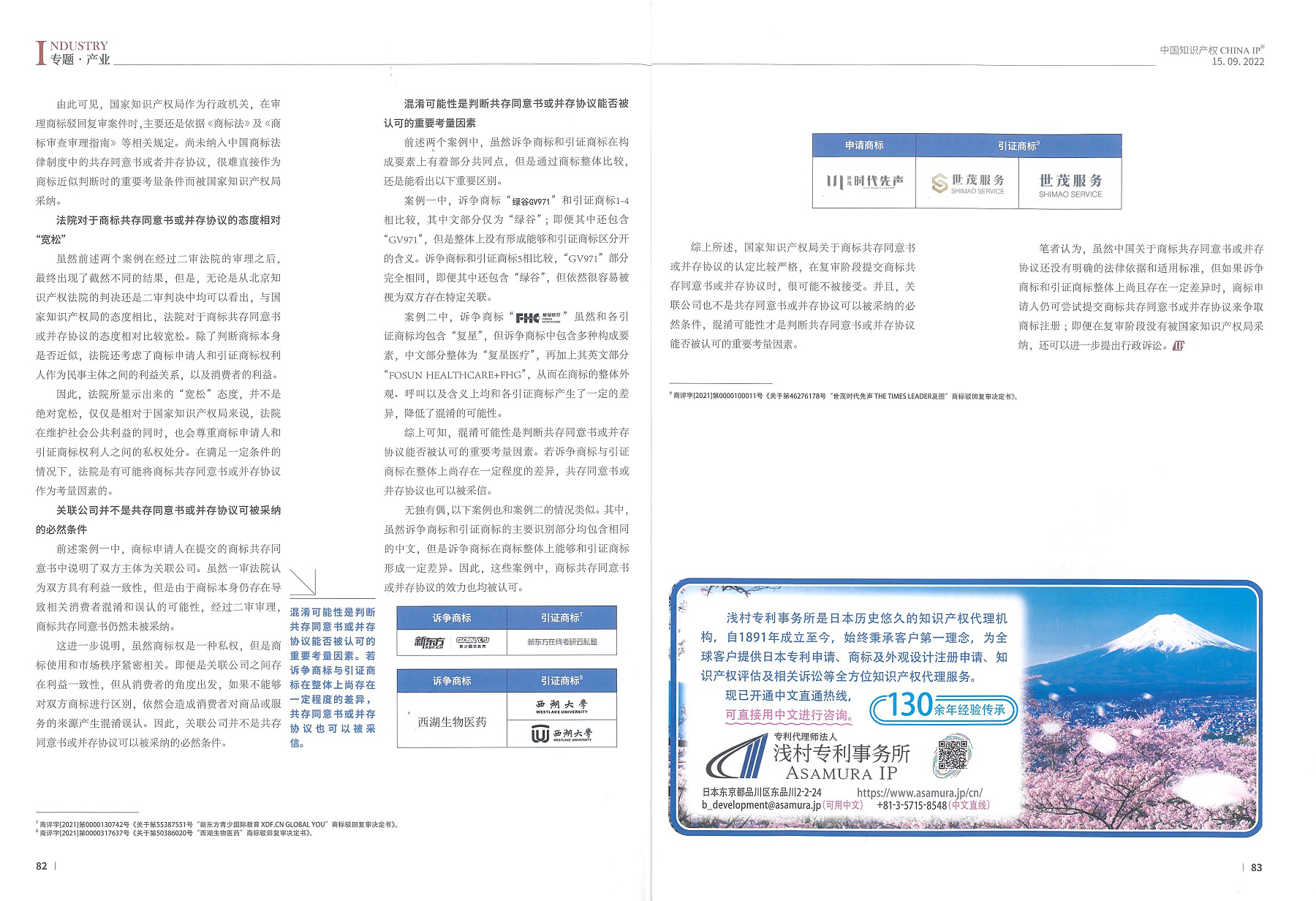 集佳文章《淺析商標(biāo)注冊申請時的共存同意書的適用》在《中國知識產(chǎn)權(quán)》發(fā)表