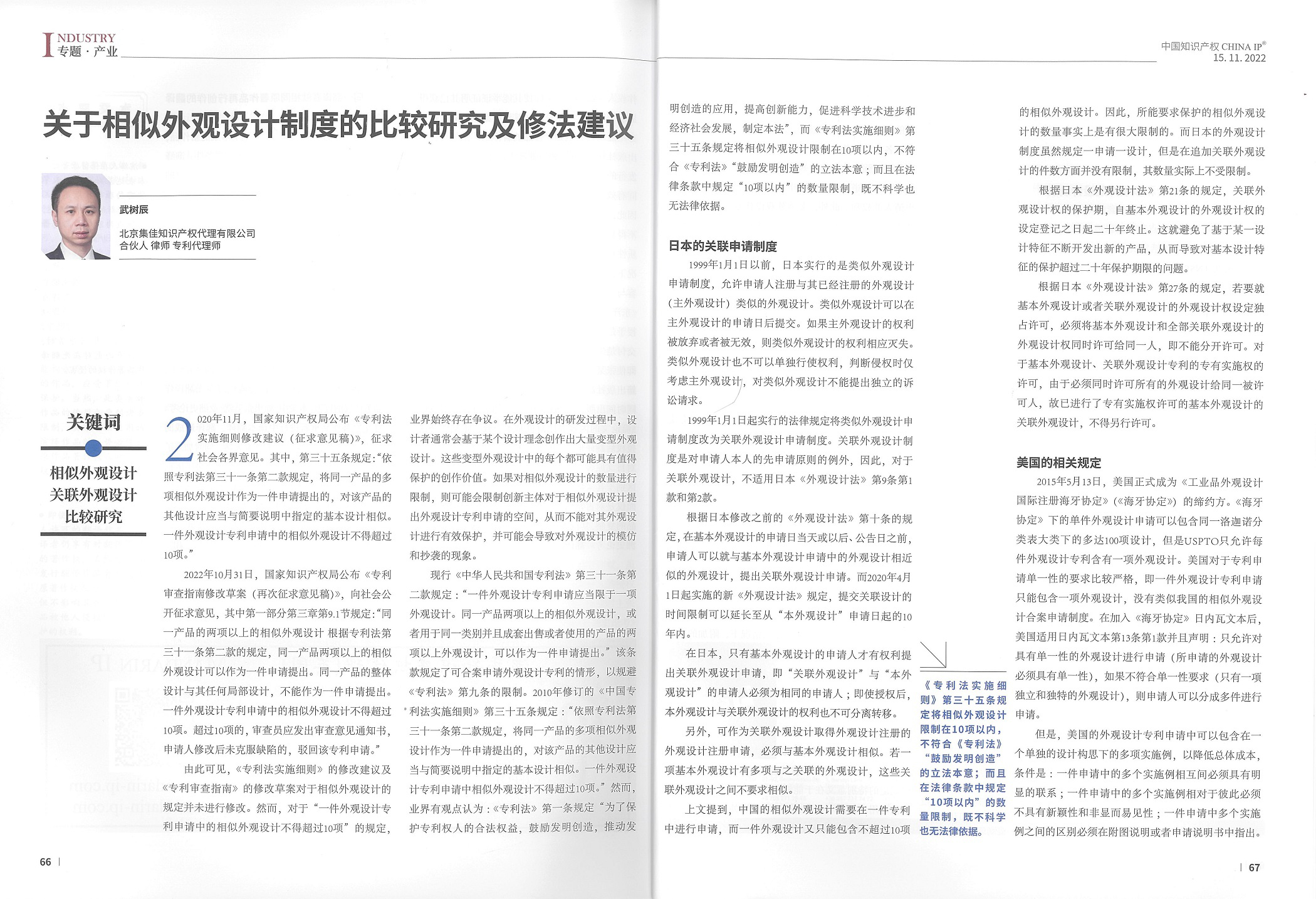 集佳文章《關于相似外觀設計制度的比較研究及修法建議》在《中國知識產權》發表