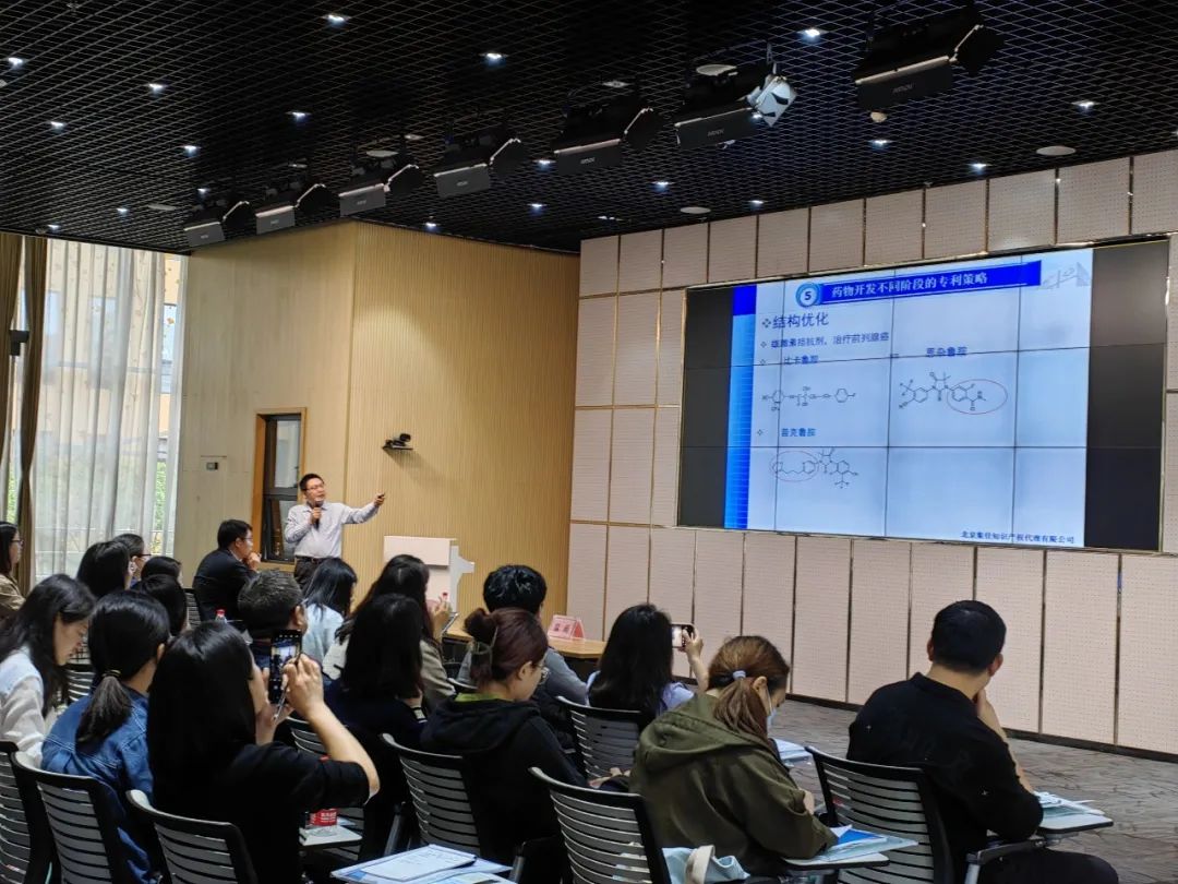 彭鯤鵬博士對藥品生命周期進(jìn)行了分析講解,然后針對藥物開發(fā)不同階段的專利策略進(jìn)行了詳細(xì)介紹;最后,彭博士從優(yōu)先權(quán)制度、保護(hù)主題、保密審查、新穎性寬限期、國際審查協(xié)作等方面對專利海外布局要點(diǎn)和注意事項(xiàng)進(jìn)行了細(xì)致的講解。