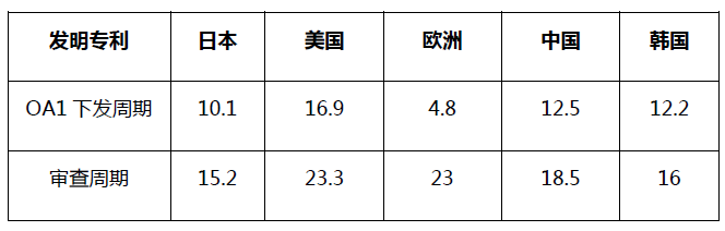 2022年日本局發明OA1平均下發周期及平均審查周期: