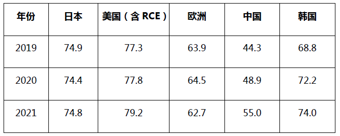 近三年五局發明授權率對比:(單位:百分比)
