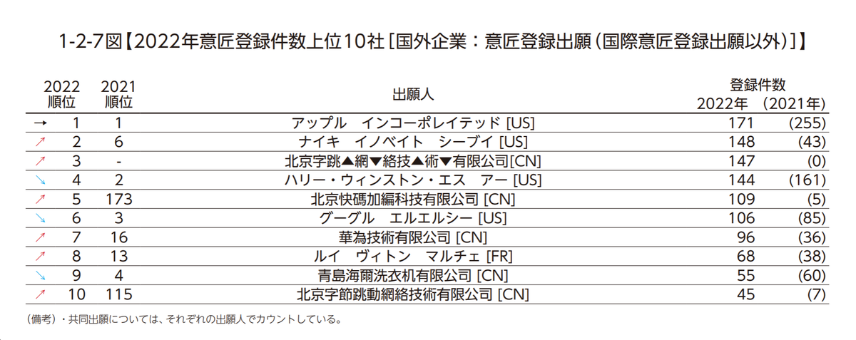 前10大日本國內企業外觀設計注冊量:
