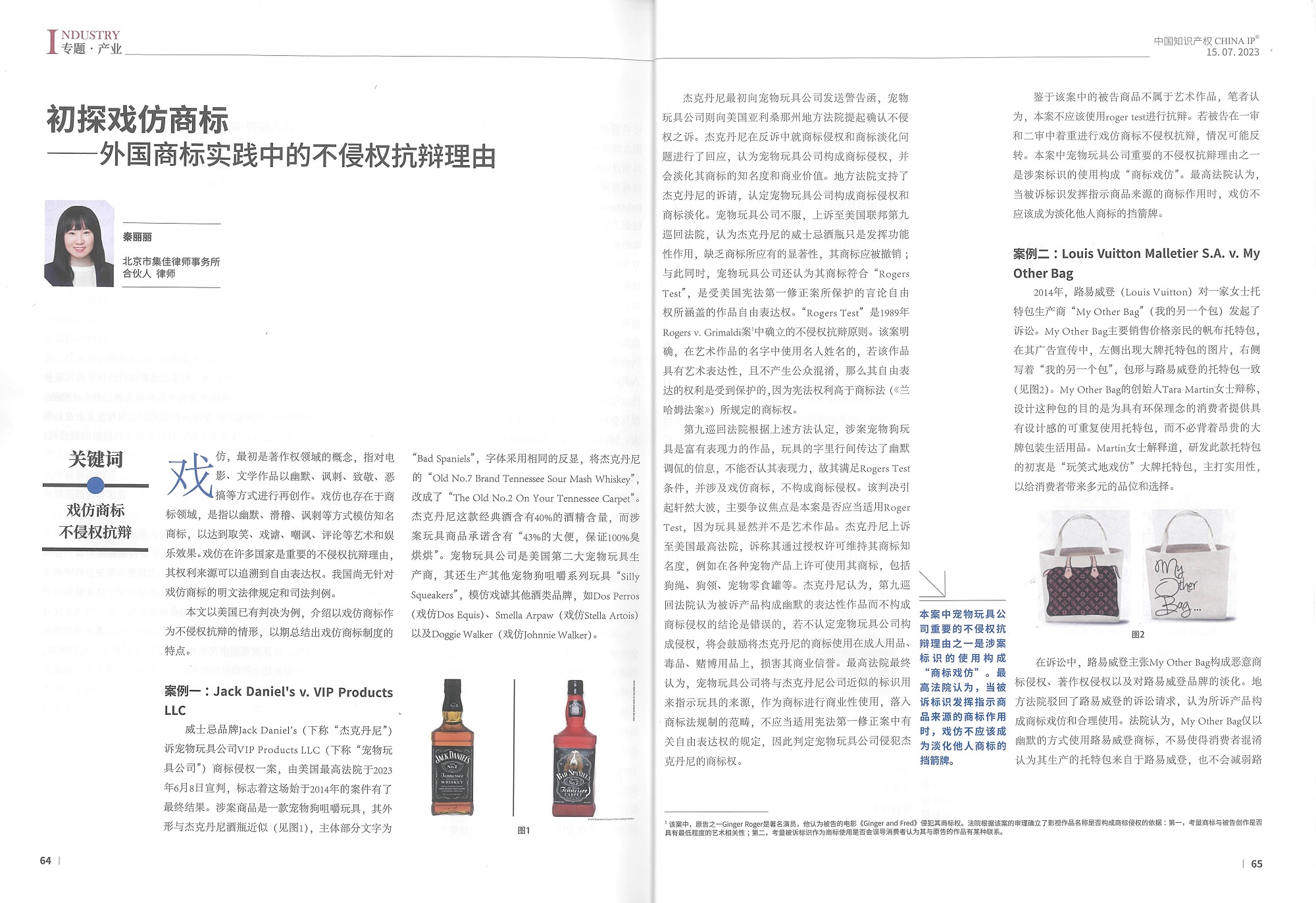 集佳文章《初探戲仿商標(biāo)——外國商標(biāo)實(shí)踐中的不侵權(quán)抗辯理由》在《中國知識產(chǎn)權(quán)》發(fā)表