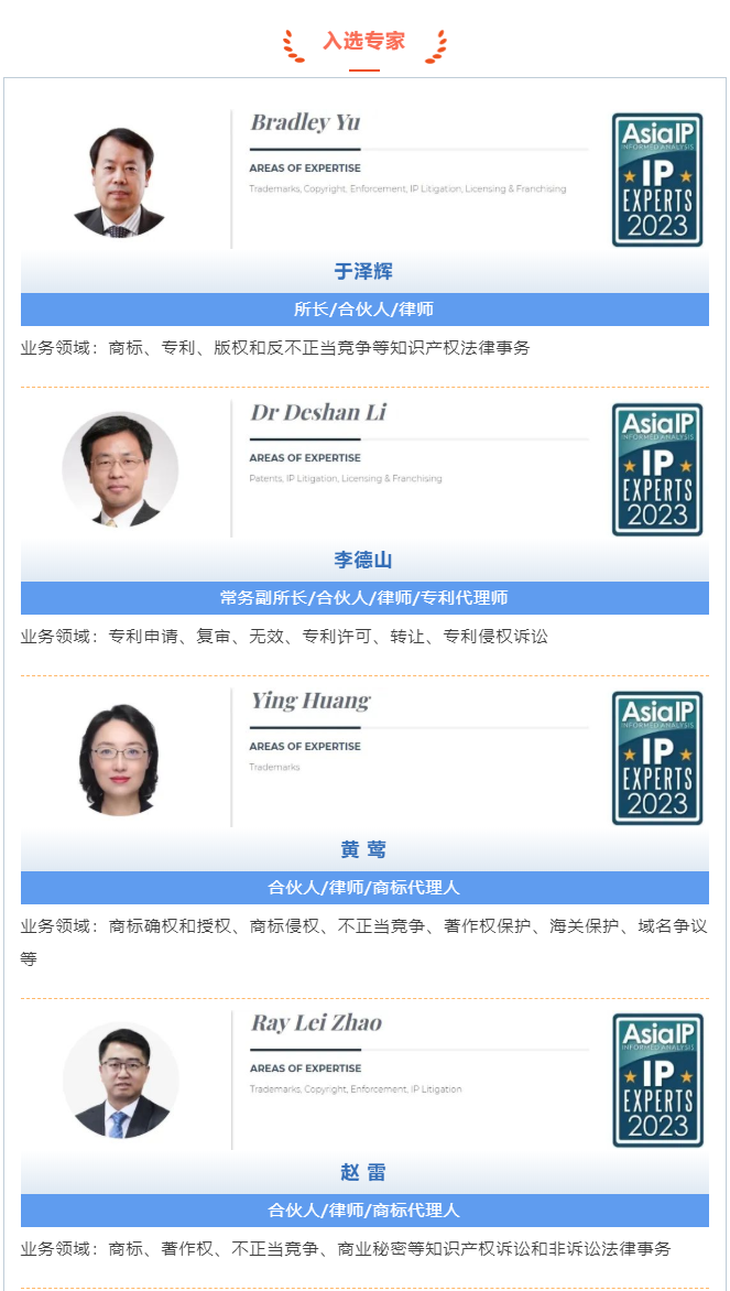 集佳5位合伙人入選Asia IP 2023年度“中國知識產權專家百強榜”