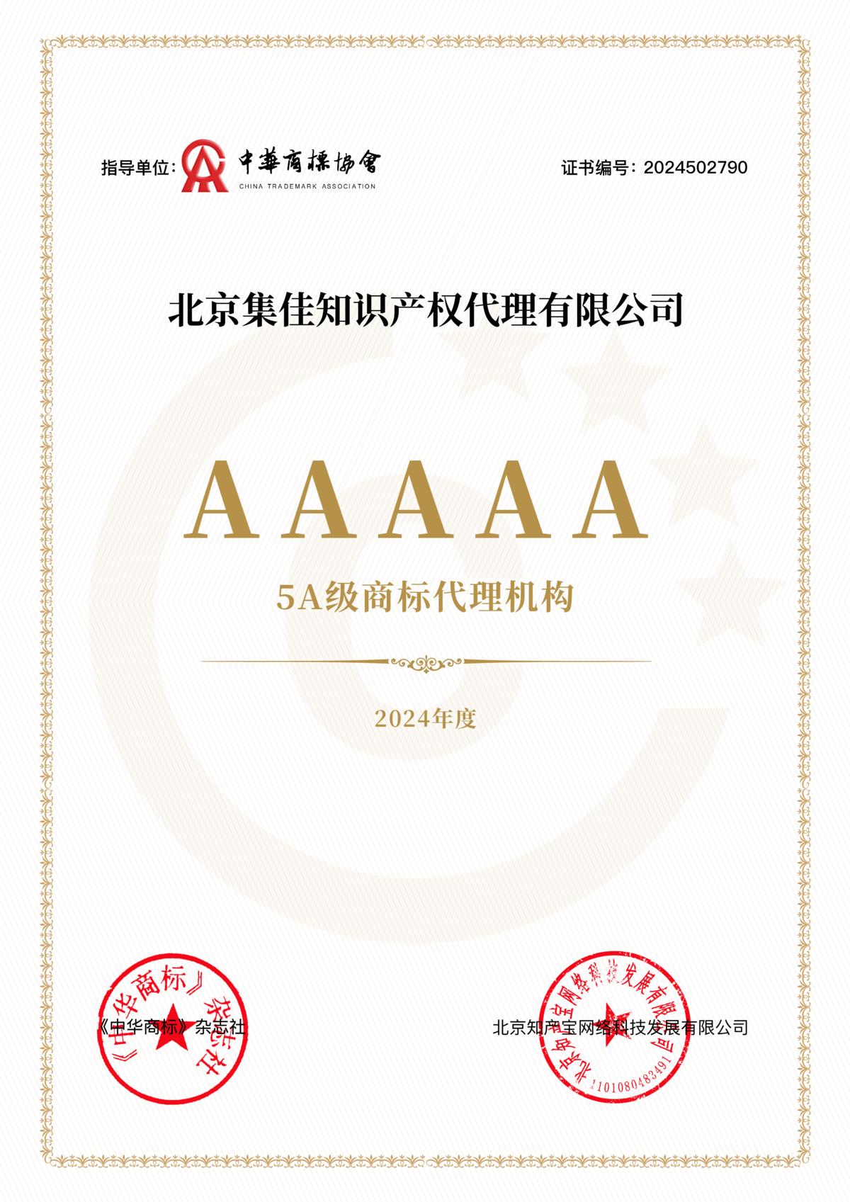在本次頒獎典禮上,知產寶攜手《中華商標》雜志社,在中華商標協會的指導下,隆重發布“2024商標代理服務能力數據統計600”榜單,集佳憑借穩健的綜合實力榮登600強之5A級機構榜單。該榜單以官方已公開的2023年權威數據為基礎,從商標申請量、商標異議案件、商標評審案件等十余個維度,建立系統化評價模型進行評價,旨在提升優質代理服務機構的可見度,推動商標代理行業強化服務意識,以提供卓越服務作為競爭的核心。