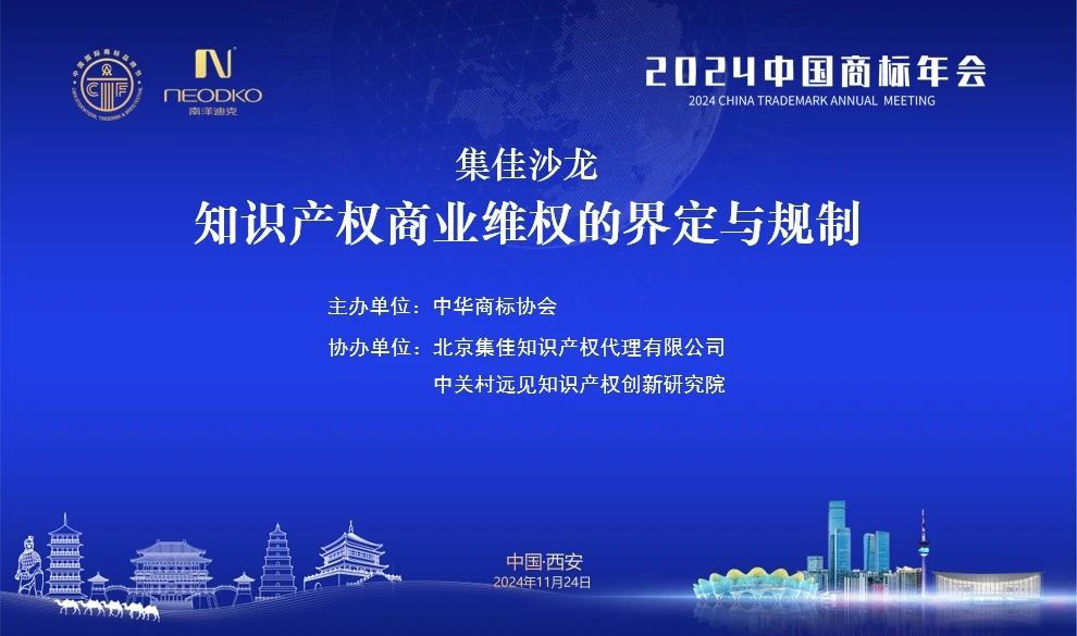 由中華商標協會主辦,陜西省品牌建設促進中心、中企商標發展中心承辦,陜西南洋迪克家具制造有限公司總協辦的第十四屆中國國際商標品牌節于2024年11月22日至25日在陜西省西安市盛大舉行。11月24日,由中華商標協會主辦、北京集佳知識產權代理有限公司與中關村遠見知識產權創新研究院協辦的“集佳沙龍——知識產權商業維權的界定與規制”主題活動在西安國際會展中心成功舉辦。本屆沙龍力邀多位資深專家,圍繞知識產權商業維權的難點和熱點問題,進行了充分的探討和交流,吸引了來自國內外企業、知識產權服務機構以及相關協會組織的200余位代表前來參與。
