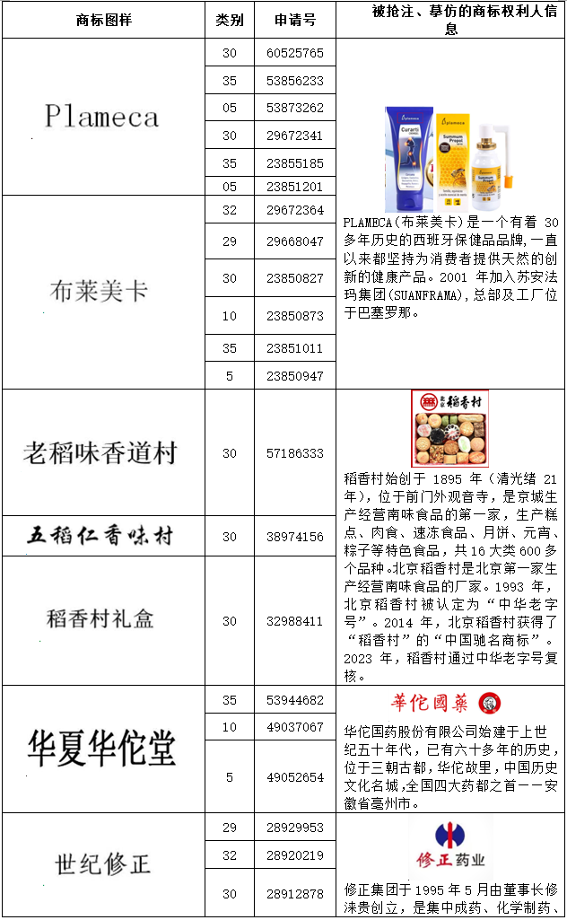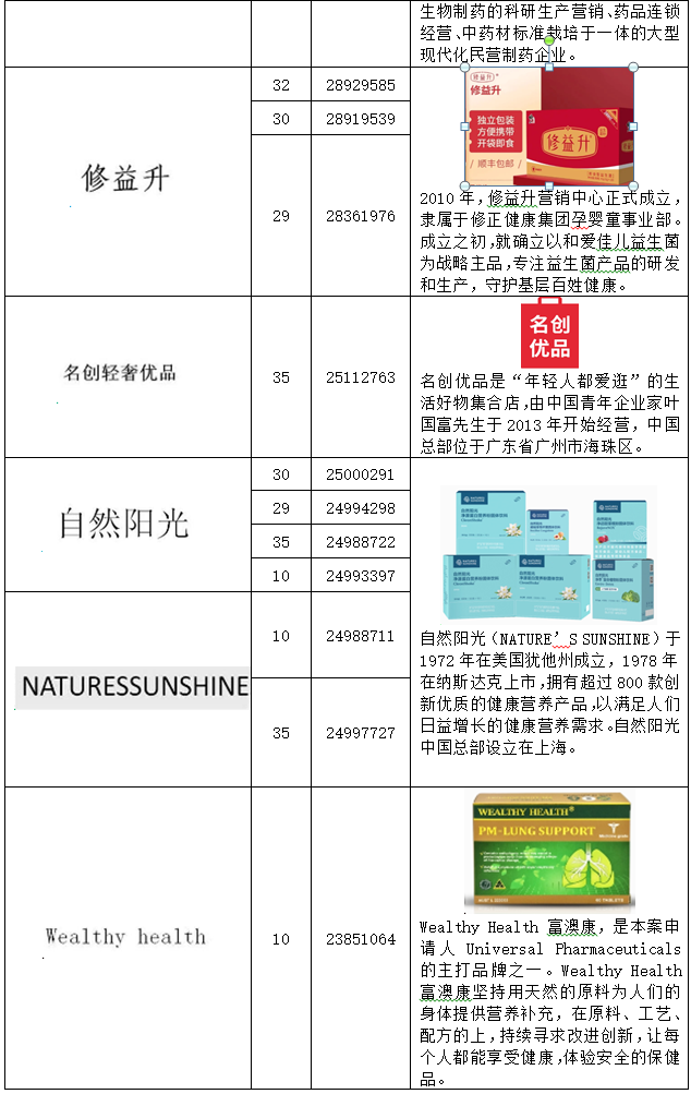 在分析系爭(zhēng)商標(biāo)申請(qǐng)人申請(qǐng)注冊(cè)商標(biāo)之時(shí),需要對(duì)其申請(qǐng)的商標(biāo)進(jìn)行逐一分析、比對(duì),并闡述說明被搶注的商標(biāo)的真實(shí)權(quán)利人的情況,并提供參考證據(jù)。如第23851064號(hào)“WEALTHY HEALTH”商標(biāo)無效宣告案(系爭(zhēng)商標(biāo)申請(qǐng)人共申請(qǐng)156件商標(biāo))中,代理人發(fā)現(xiàn)該商標(biāo)申請(qǐng)人北京鑫鵬福元商貿(mào)有限公司申請(qǐng)的多件商標(biāo)與其他具有強(qiáng)顯著性和知名度的商標(biāo)相同或者近似,且被搶注的商標(biāo)的真實(shí)權(quán)利人根據(jù)查詢均可以一一對(duì)應(yīng)。通過列表,這些系爭(zhēng)商標(biāo)申請(qǐng)人搶注他人的情況可以很清晰的展示出來。